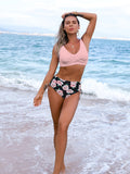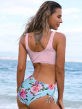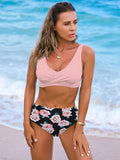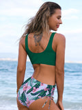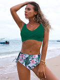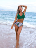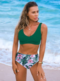 Sale Green Floral Print Racerback Cutout High Waist 2pcs Bikini