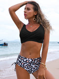 Sale Random Print Bikini Sets, V Neck Layer Bra Tie Side High Cut Casual Beachwear 2 Pieces Swimsuit