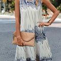 Sale Random Printed Paisley Print Sleeveless Dress, Boho Crew Neck Pleated Tank Dress, Women's Clothing