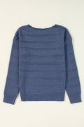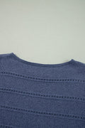 Real Teal Boat Neck Drop Shoulder Pointelle Knit Sweater