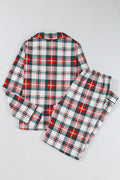 Red Christmas Plaid Print Two Piece Long Sleeve Pajamas Set