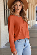 Red Clay Asymmetric Seam Detail Solid Color Long Sleeve Top