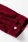 Red Dahlia Asymmetric Button Keyhole Neck Long Sleeve Velvet Blouse