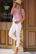 Sale Apricot Leopard Print Round Neck Casual T Shirt