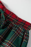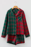 Red Plaid Contrast Patched Christmas Holiday Long Sleeve Shirt and Short 2pcs Pajama Set
