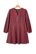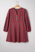 Red Plus Size Plaid Half Button Long Sleeve Holiday Dress