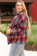 Sale Red Plus Size Plaid Print Buttoned Shirt