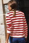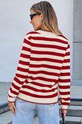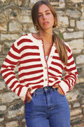 Red Stripe Chic Golden Button Cardigan Sweater