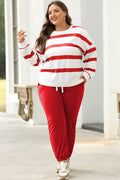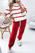 Red Stripe Drop Shoulder Pullover and Jogger Pants Set