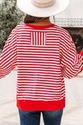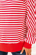 Red Stripe Exposed Seam Drop Shoulder Casual Pullover Top