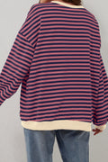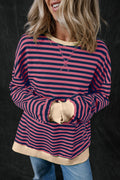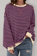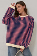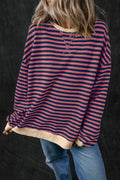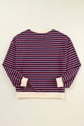 Sale Red Stripe Oversized Contrast Trim Pullover Sweatshirt