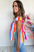Red Stripe Ruffled Straps Babydoll Tank Top