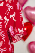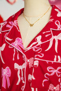 Red Sweet Bow Print Ruffled Short Sleeve Shirt Shorts 2pcs Pajama Set