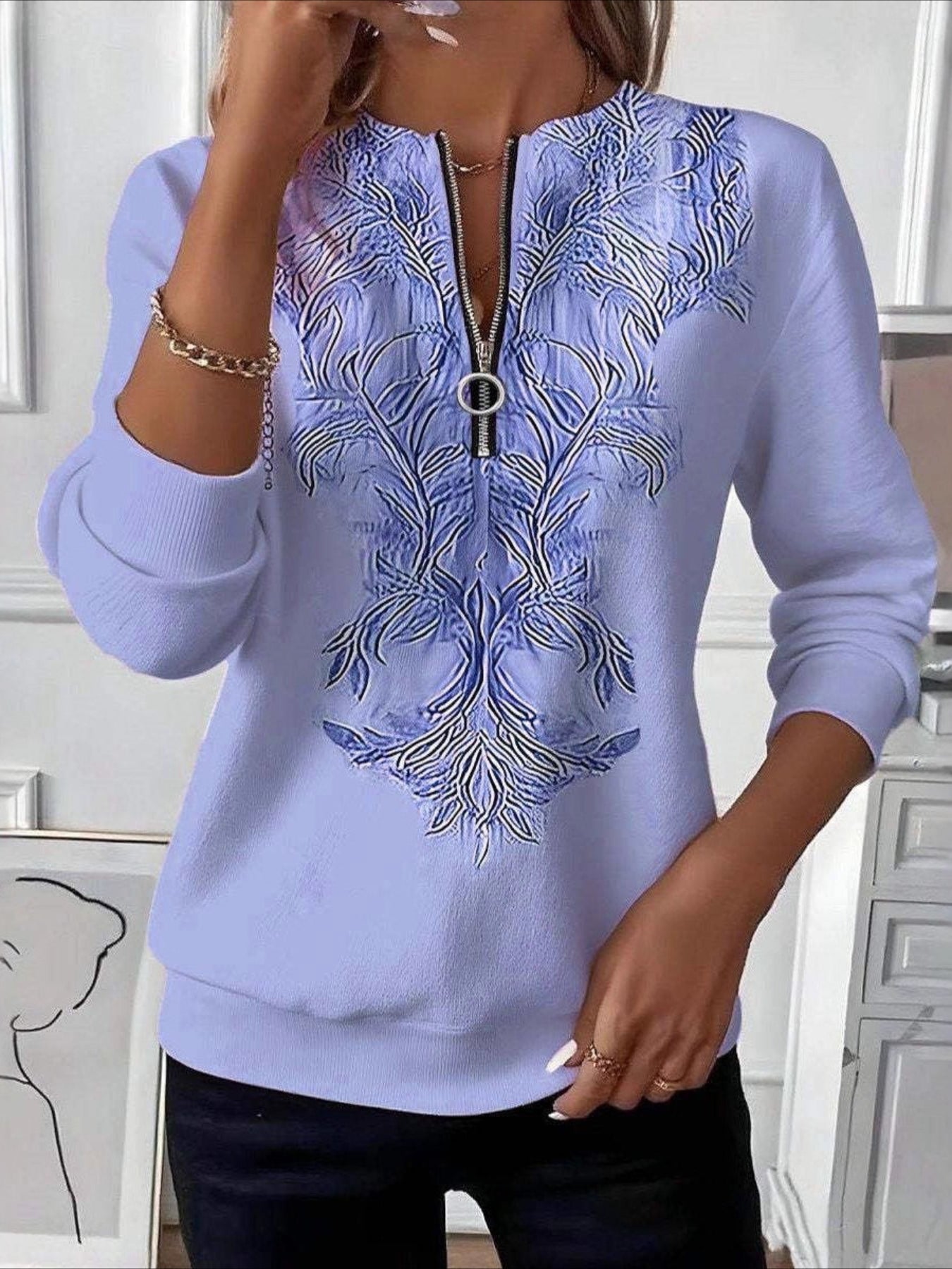 Sale V Neck Long Sleeve Geometric Regular Micro-Elasticity Regular Fit Blouse