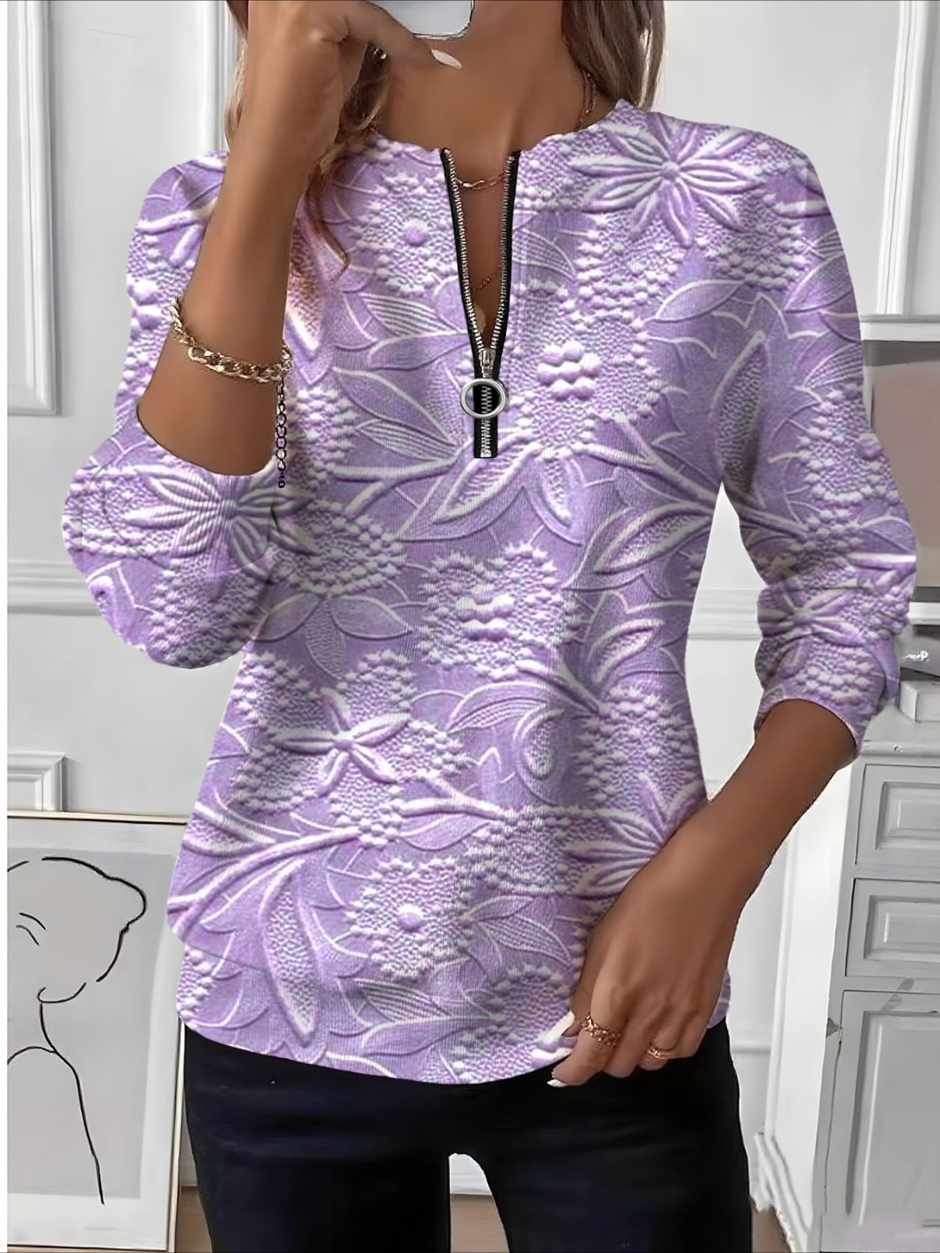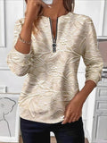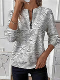 Sale V Neck Long Sleeve Geometric Regular Micro-Elasticity Regular Fit Blouse