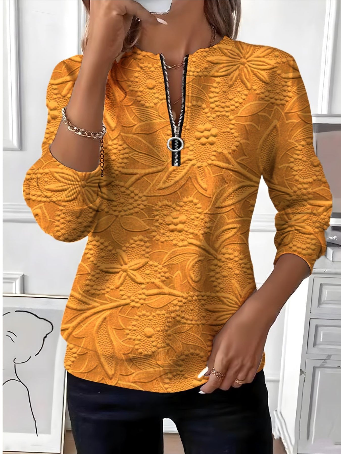 Sale Women's Color Block Quarter Zip T-Shirt - Casual Long Sleeve Top