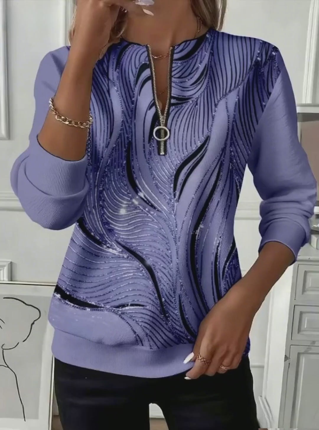 Sale V Neck Long Sleeve Geometric Regular Micro-Elasticity Regular Fit Blouse