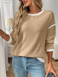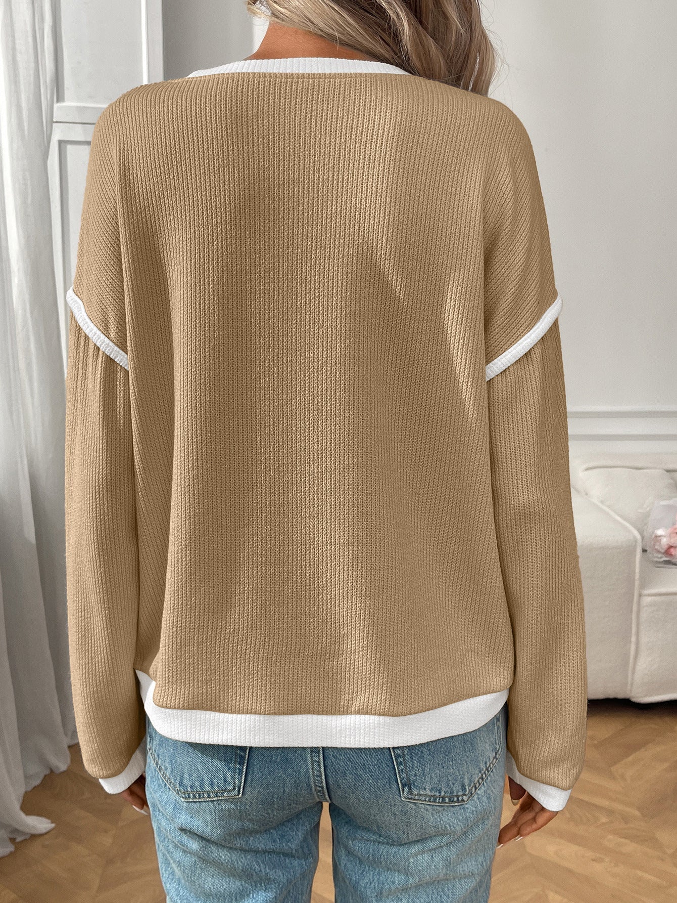 Sale Ribbed Contrast Trim Long Sleeve Top