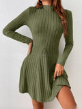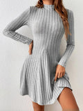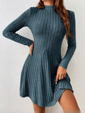 Ribbed Knit Long Sleeve Dress, Casual Crew Neck Knit A-line Dress