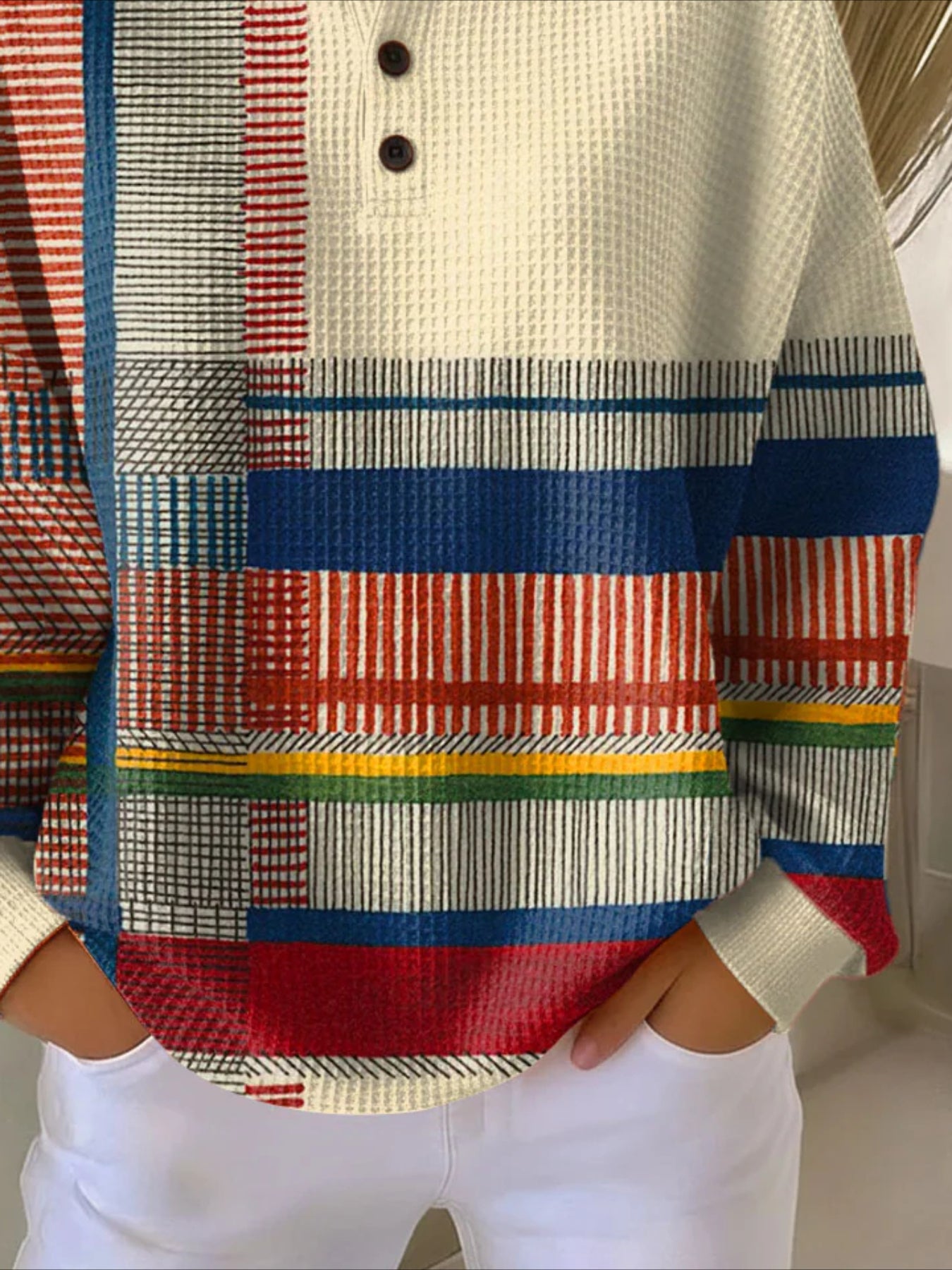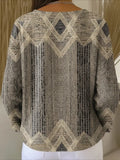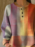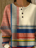 Colorful Ribbed V Neck Braided Print Long Sleeve Regular Sweatshirt