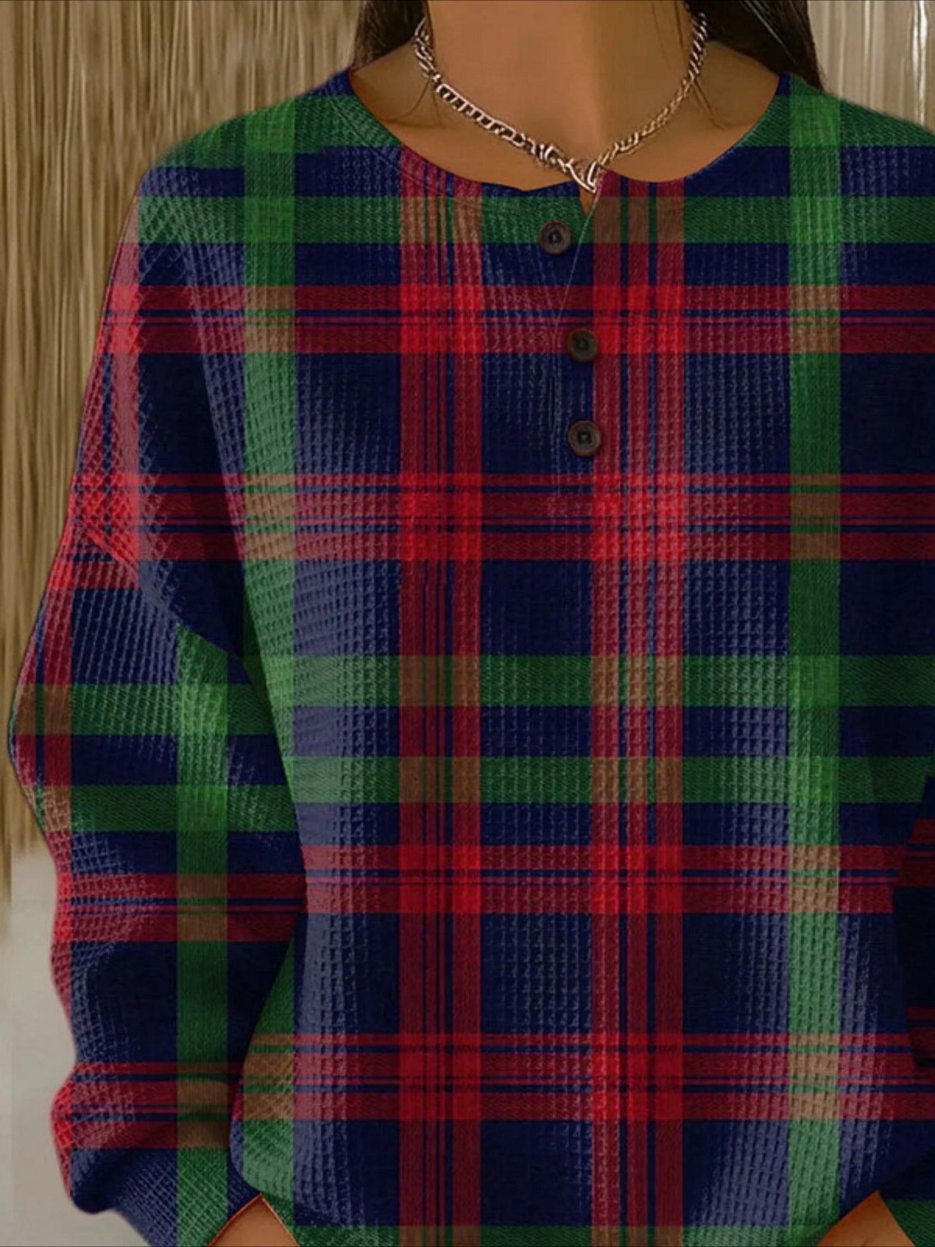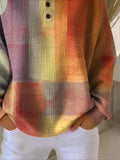 Plaid Vintage Stylish Long Sleeve Crew Neck Regular Tops