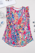 - This is a gorgeous tank top featuring a blooming floral print and flattering ruffle sleeves