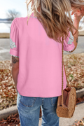 Sale Rose Floral Ric Rac Edge Puff Sleeve Button Up Summer Shirt