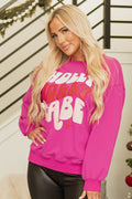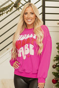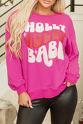 Rose Red Christmas Holly Jolly Babe Graphic Oversized Sweatshirt