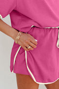 Rose Red Colorblock Edge Drop Shoulder T Shirt and Skort 2Pcs Set