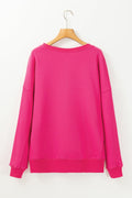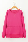 Sale Rose Red Drop Shoulder Crisscross Stitching Pocketed Loose Sweatshirt