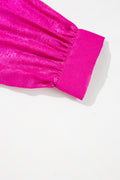 Sale Rose Red Metallic Frilled V Neck Puff Sleeve Babydoll Blouse