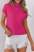 Sale Rose Red Patch Pocket Ribbed Knit Short Sleeve Sweater