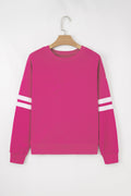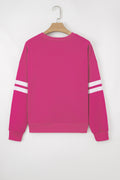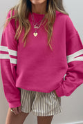Rose Red Varsity Striped Detail Drop Shoulder Oversized Sweatshirt