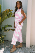 Sale Rose Stripe Casual Wide Leg 2pcs Pants Set