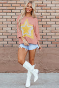 Rose Tan Floral Starbust Exposed Seam Mineral Wash Top