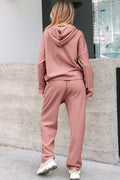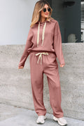 Rose Tan Lace Drawstring Pullover Hoodie and High Waist Pants Corduroy Suit