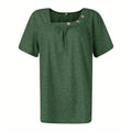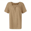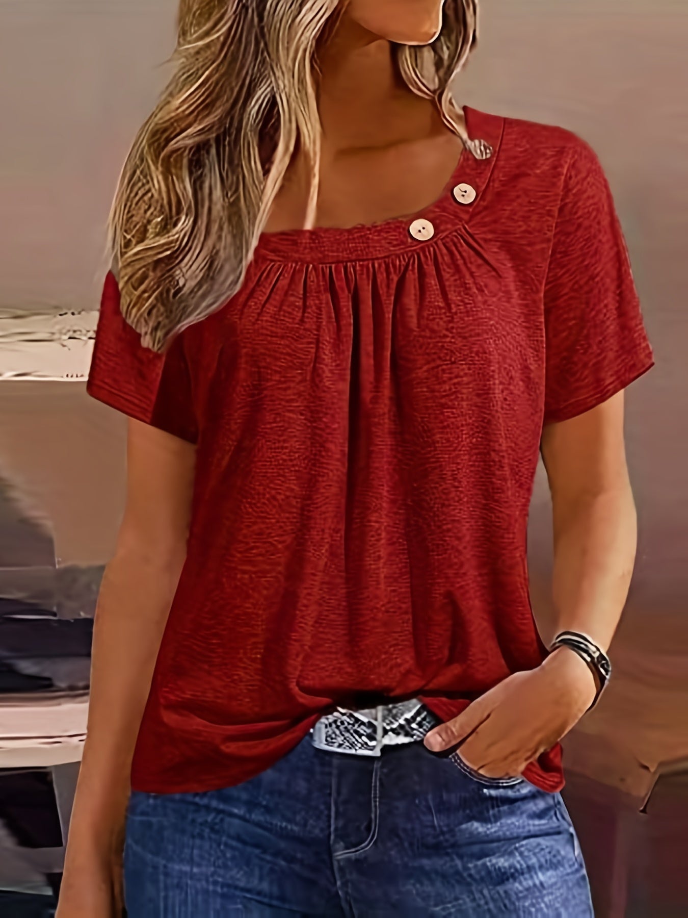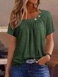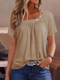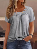 Ruched Solid Blouse, Casual Asymmetrical Short Sleeve Blouse