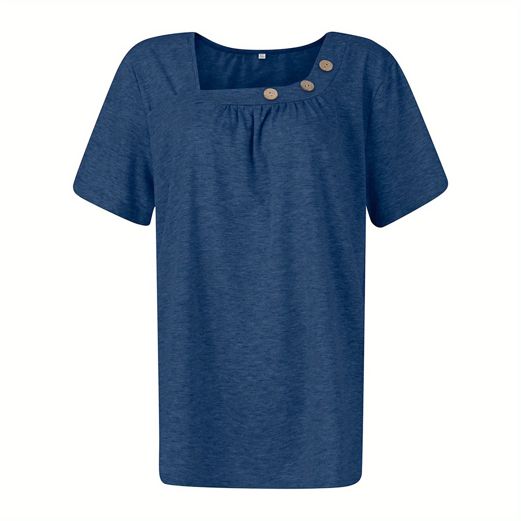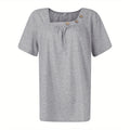 Sale Ruched Solid Blouse, Casual Asymmetrical Short Sleeve Blouse