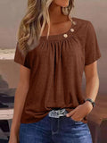 Sale Ruched Solid Blouse, Casual Asymmetrical Short Sleeve Blouse