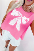 - This pink tank top is cute in a boxy fit style.The contrast bow print front makes it more feminine.It’s classic with a round neck.The sleeveless design makes wearers feel cool in hot summer.