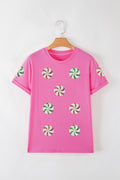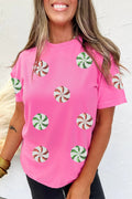 Sachet Pink Sequined Peppermint Pattern Christmas Custom T Shirt