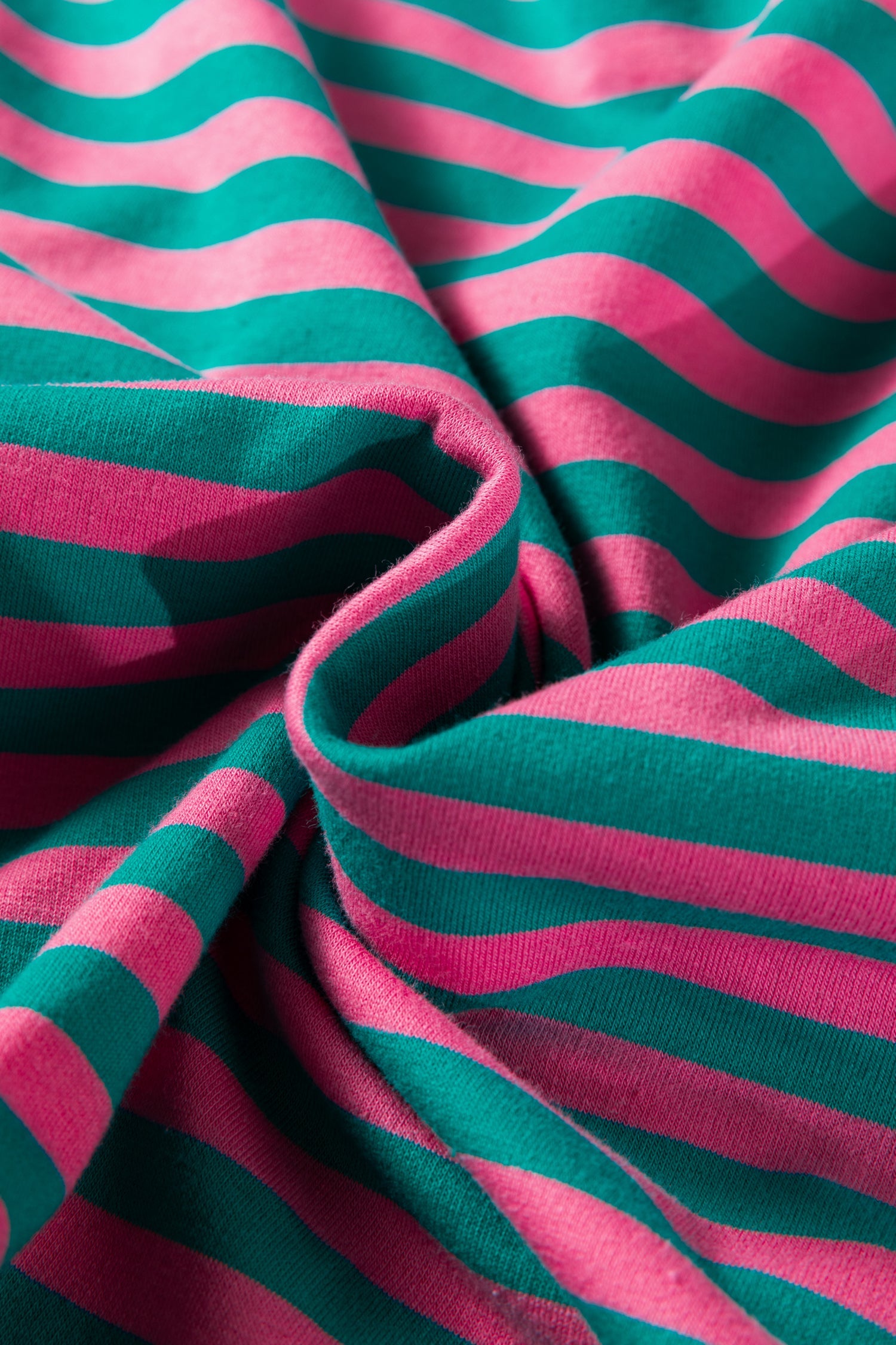 Sachet Pink Striped Print Drop Shoulder Lace Trim Bracelet Sleeve Loose Top
