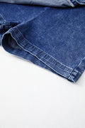 Sale Beau Blue Contrast Drawstring Elastic Waist Denim Shorts