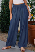 Sail Blue Side Pockets Frilled Smocked High Waist Wide Leg Jeans