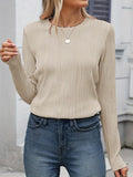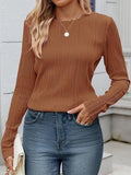 Sale Striped Botton Crew Neck T-Shirt, Elegant Long Sleeve T-Shirt