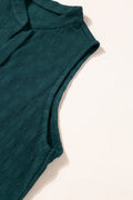 Sale Sea Green Lattice Textured Split Neck Tank Top