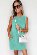 Sea Green Mineral Wash Tank Mini Dress with Pockets