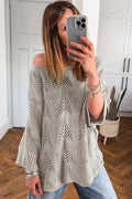 Seagrass Hollow Out Knit 7/8 Sleeve Casual Sweater