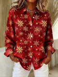 Shawl Collar Long Sleeve Christmas Regular Loose Shirt