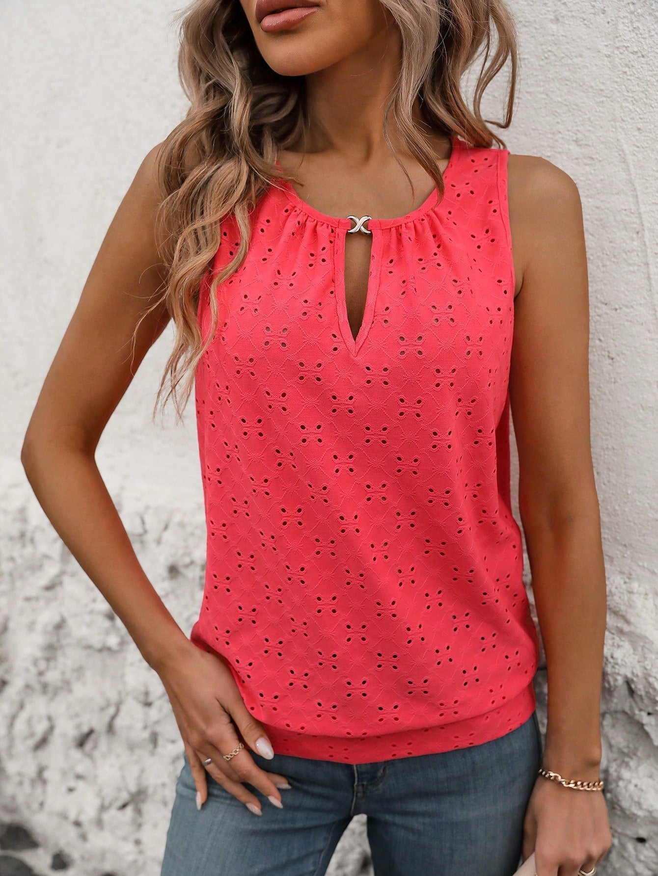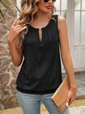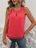 Sale Women's Burnout Embroidery Lock Hole Collar Tank Top